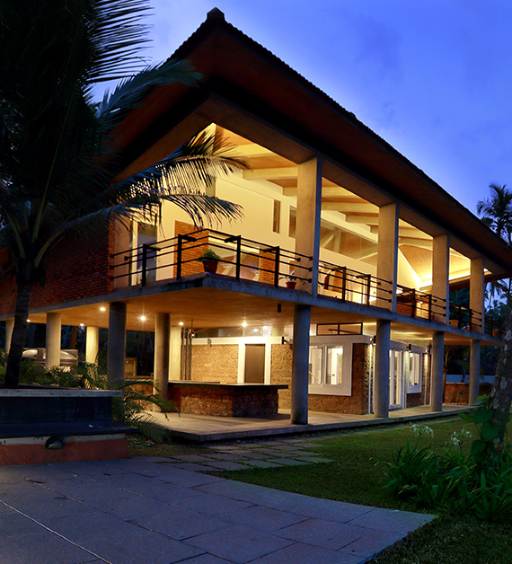 The new structure aligned at an angle, floats over the lower structure. Roof of the existing structure was demolished and the space between the old and new structure was sealed with continues frameless glass panes, maintain the individuality of the two structure. The slab was designed with strategically located upturned beams to maintain a flat slab at the bottom in response to the irregularly placed circular columns.